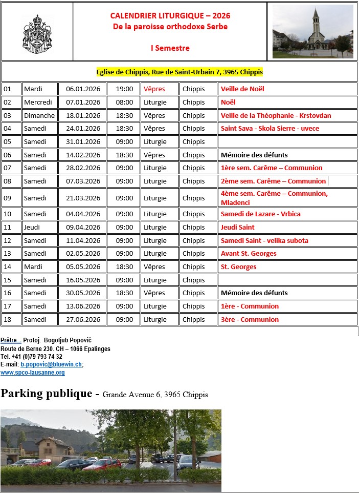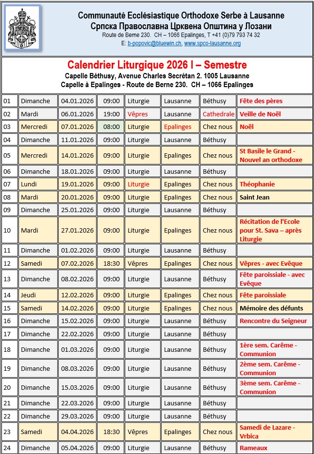 Pour toute demande ou question, veuillez vous adresser au Père Bogoljub Popovic à l'adresse suivante : b-popovic@bluewin.ch